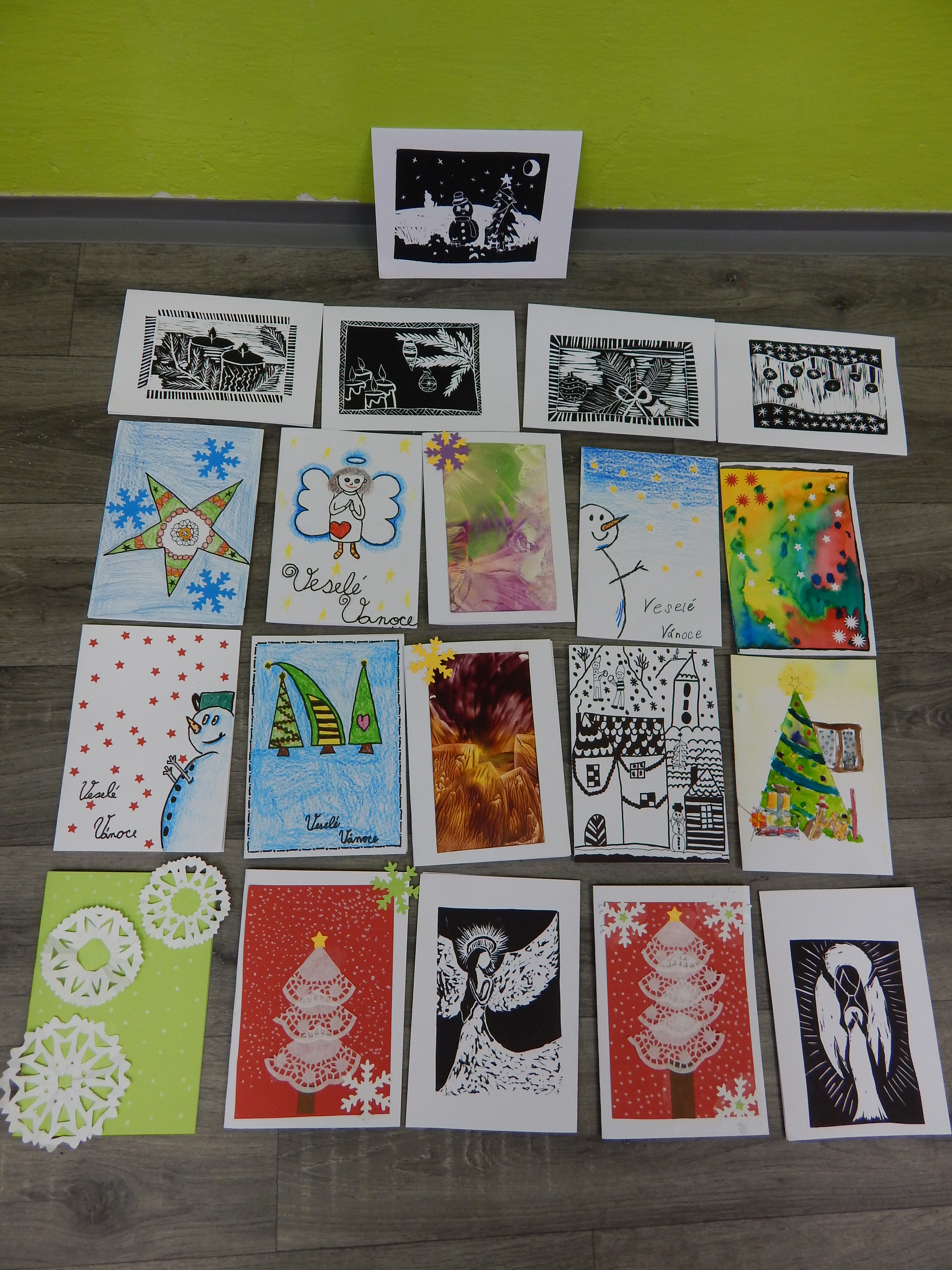 Myšlenka tohoto projektu nás velmi oslovila, a proto jsme se rozhodli také se zapojit do tohoto projektu. Naši žáci vyrobili přes 200 vánočních přáníček pro babičky a dědečky z domovů pro seniory. Doufáme, že se jim budou líbit a udělají jim radost.