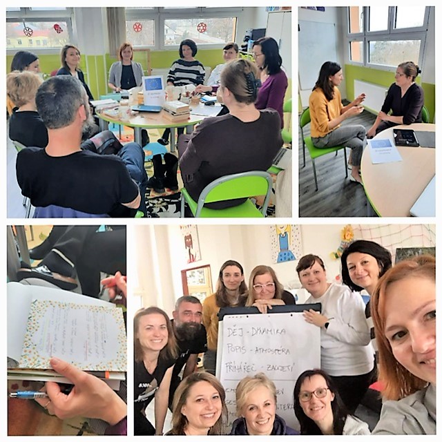 Ve workshopu jsme prošli základní techniky této metody. Zaměřili jsme se na tvorbu příběhu, nahlédli do základních struktur a fungování příběhu. Zkusili si cvičení zaměřená na autorské psaní a scénáristické postupy. Ukázali jsme si, jak pracovat na příběhu s žáky, jak jim předat základní techniky a zábavnou tvorbou společně vytvořit fungující a zajímavý příběh. Druhý den byl zaměřen na samotné vyprávění, dramaturgii a příběh, který jsme se naučili hlouběji rozpracovat. Nyní mohou naši učitelé své dovednosti aplikovat při své práci s dětmi. Školení bylo velmi přínosné. Děkujeme Markétě Holé a Storytelling.cz.