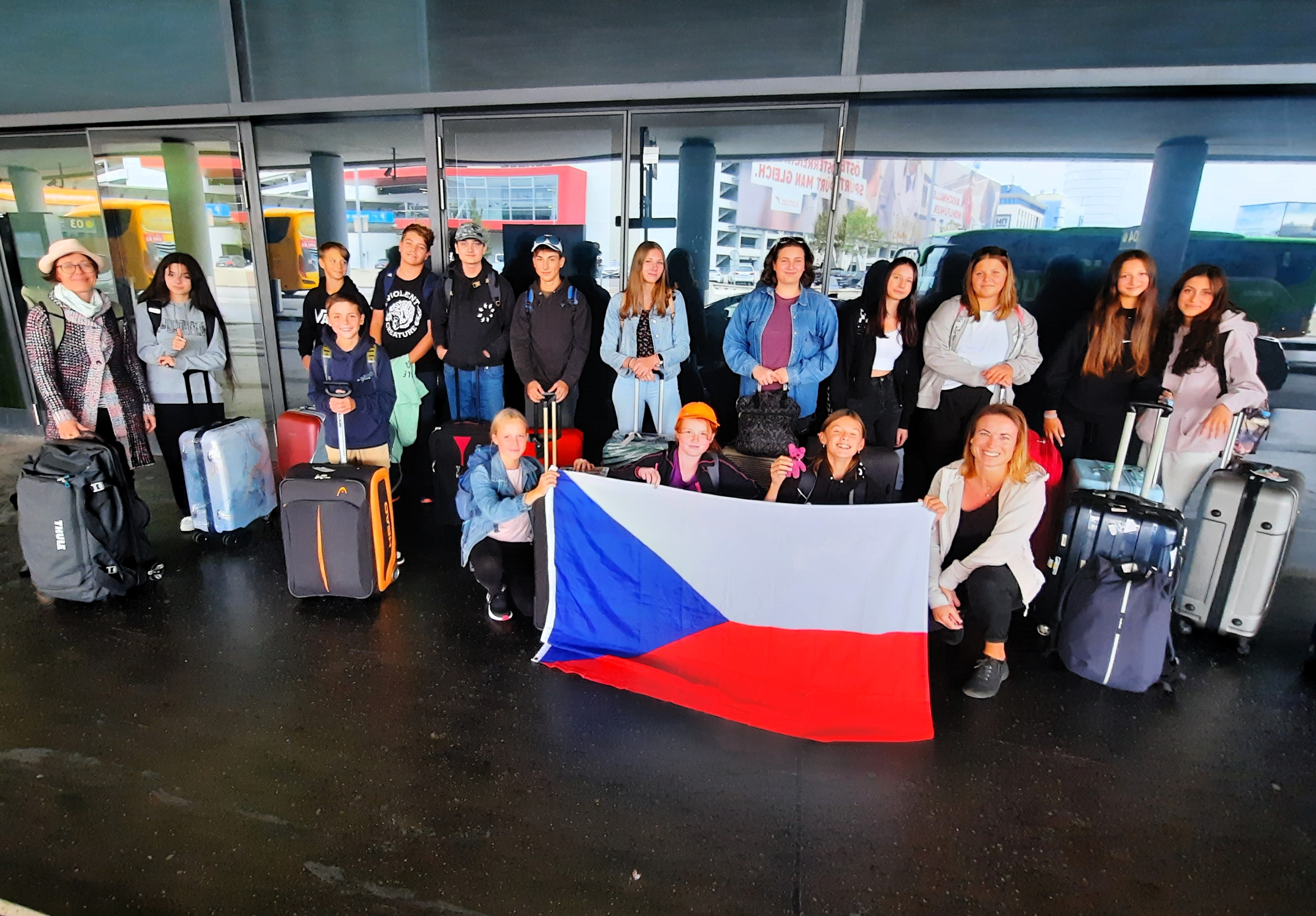 V neděli 24. září jsme se v poledne sešli v Brně u hotelu Grand, odkud nám jel autobus do Vídně na letiště. 15 žáků naší školy a paní učitelky Petra Svobodová, Jana Jarošová a pan učitel Miroslav Horák se rozloučili se svými nejbližšími, nasedli do autobusu a naše dobrodružství začalo.
