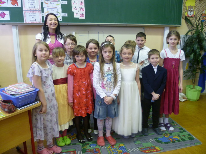 Ve čtvrtek 21. 3. proběhl na škole "Společenský den". Všichni měli přijít společensky oblečení, což opravdu většina udělala a moc jim to slušelo :) Ráno byli všichni "dospěláci" přivítáni ve škole tulipánem, byl přece první (druhý) jarní den. Dopoledne byli všichni, kteří přišli společensky oblečeni, odměněni lískem do tomboly. Kdo byl skvěle oblečen, dostal lístky dva.