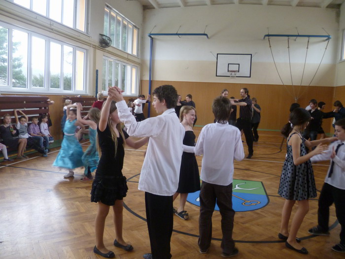 Po slavnostním obědě následovala výuka tanců pod vedením pí uč. Vaněčkové mladší a jejího tanečníka Radka. Předvedli nám několik ukázek z vyučovaných tanců, došlo i na zvedačky, byli naprosto úžasní. Po utvoření tanečních párů a něco málo společenské výuky, jsme si zatančili jive, waltz, mazurku a blues. Můj velký dík patří Hance a Radkovi za organizaci odpoledne a jejich trpělivost, a také všem parlamenťákům za přípravu a organizaci celého dne. Pro mě a doufám, že i pro ostatní, to byl vydařený a moc hezký den JJ