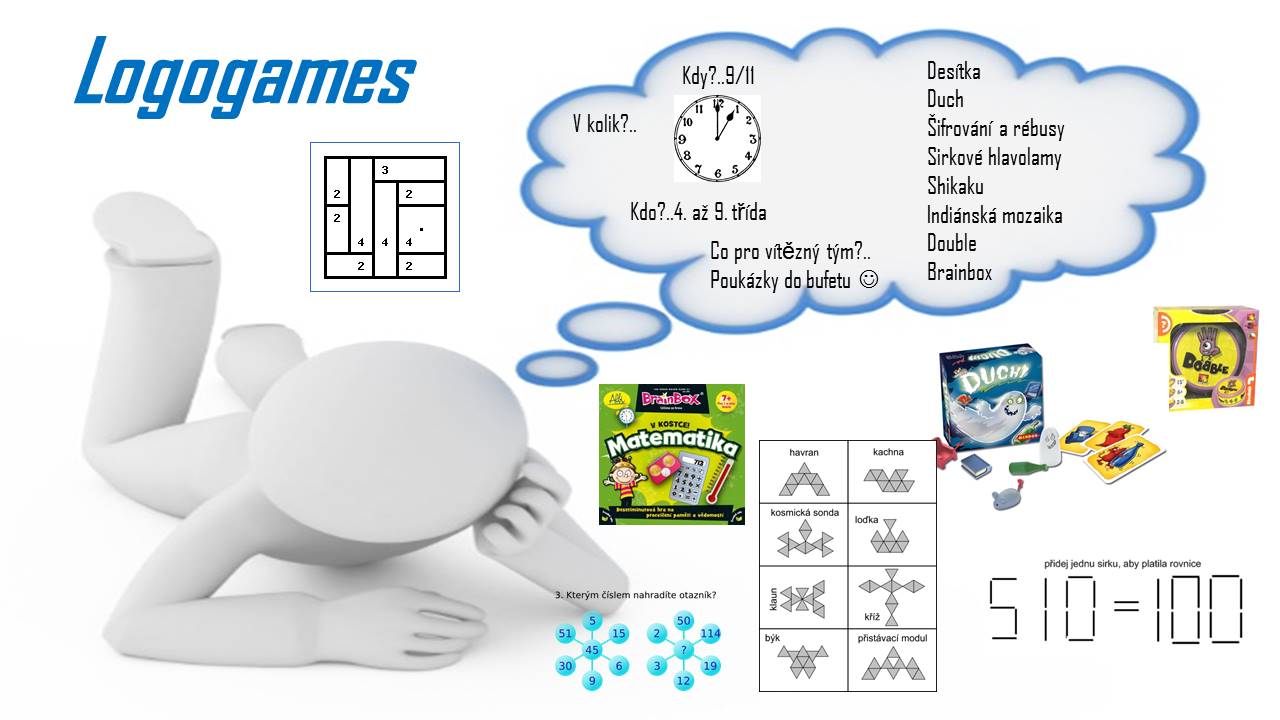 V pondělí 9.11.2015 nás čeká již čtvrtý ročník Logogames, které si pro nás tradičně připraví žákovský parlament. Takže mozkové závity připravit! JJ