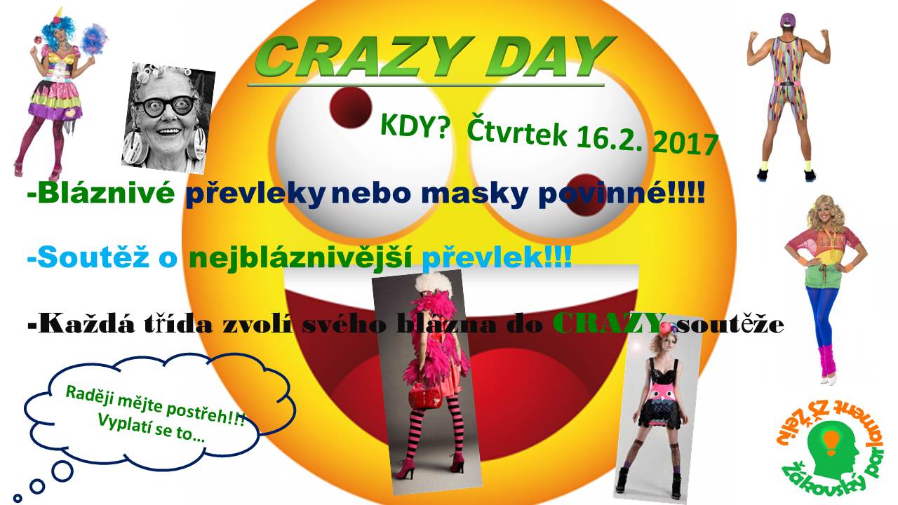 Již tento čtvrtek se můžete těšit na Crazy day aneb den plný bláznivých převleků a nápadů, který pro Vás připravuje parlament. ŽP