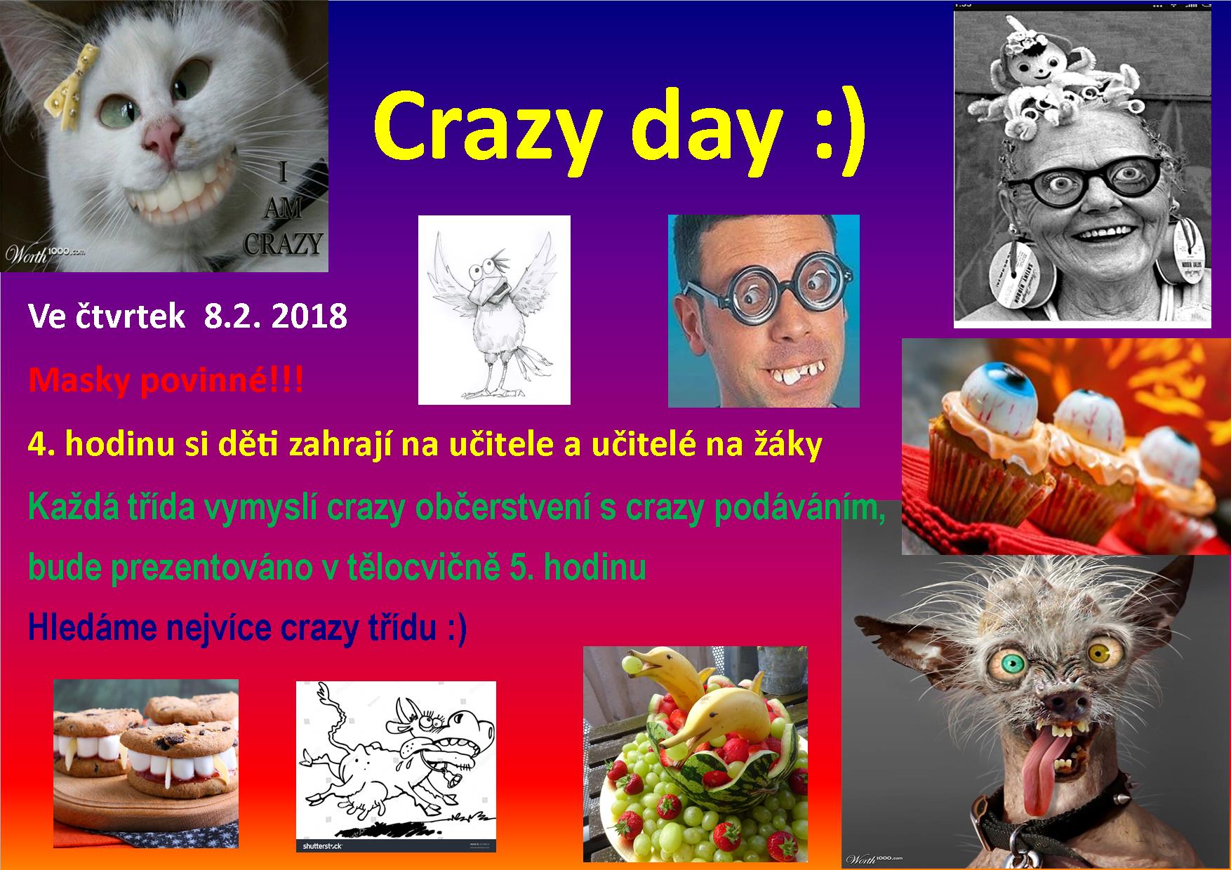 Příští týden nás čeká Crazy den, jakási alternativa na masopustní rejdění. Loni měl velký úspěch, proto neváhejte, máte šanci se dostatečně vybláznit.